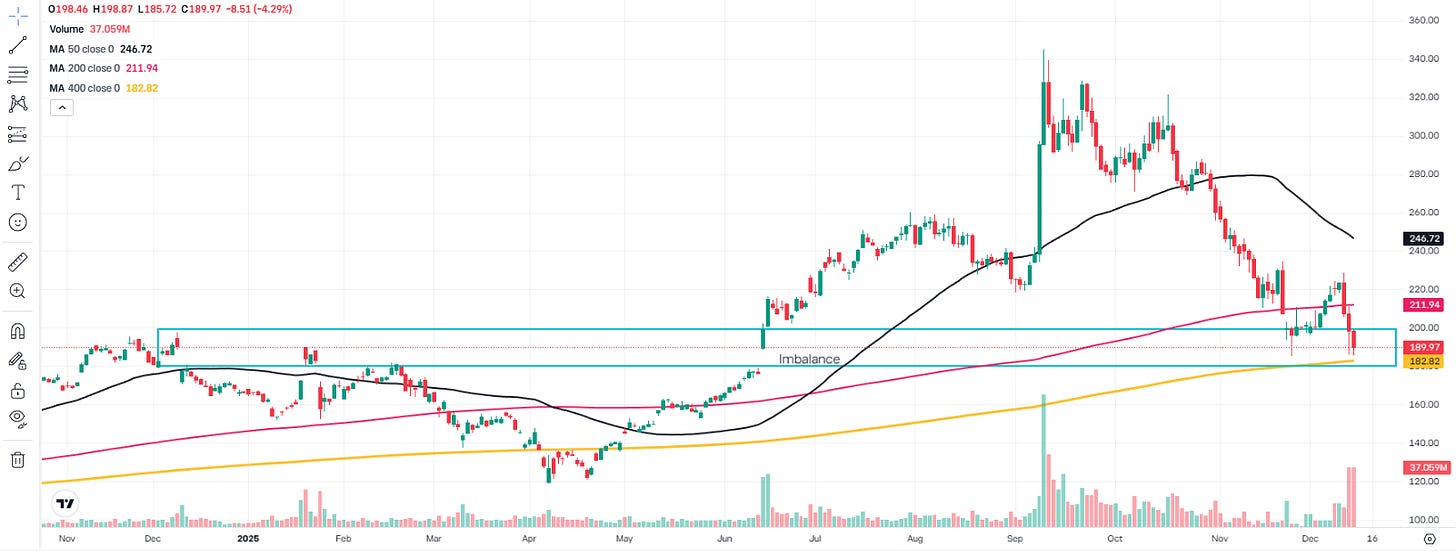 The final full trading week before the holidays opens with elevated volatility risk in Bloom Energy (BE) and Hut 8 (HUT). Semiconductor-focused investor meetings featuring ACMR, AEIS, and FORM, alongside Fed commentary, will shape early sentiment around capex discipline and demand visibility into 2026.